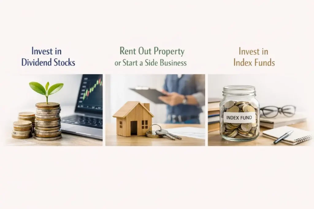 - Invest in stocks, bonds, or real estate.